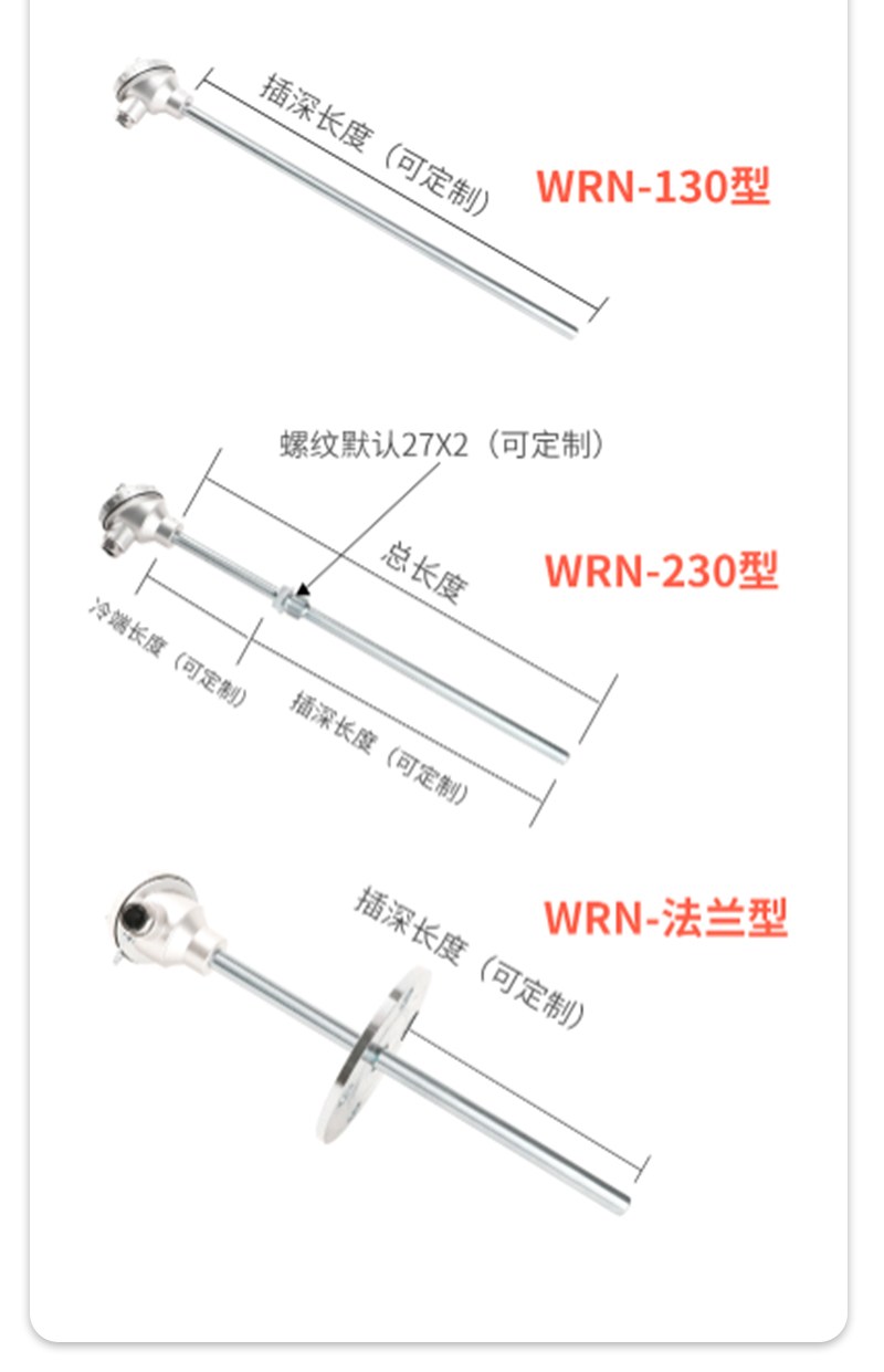 K型熱電偶 溫度傳感器 WRN-130 裝配式 耐高溫0~1300℃ 保護管材質(zhì) GH3039