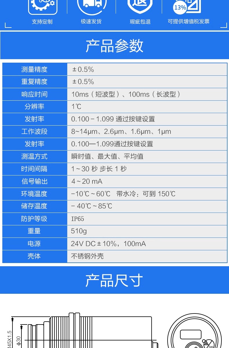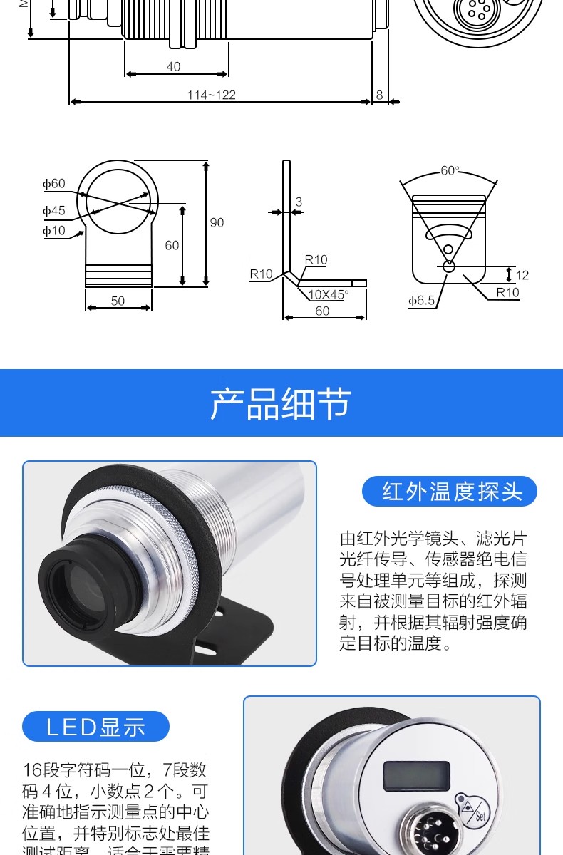 工業(yè)用紅外溫度傳感器非接觸短波探頭高精度高溫金屬紅外線測溫儀