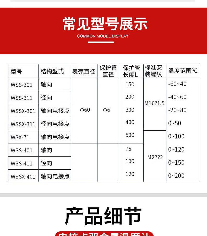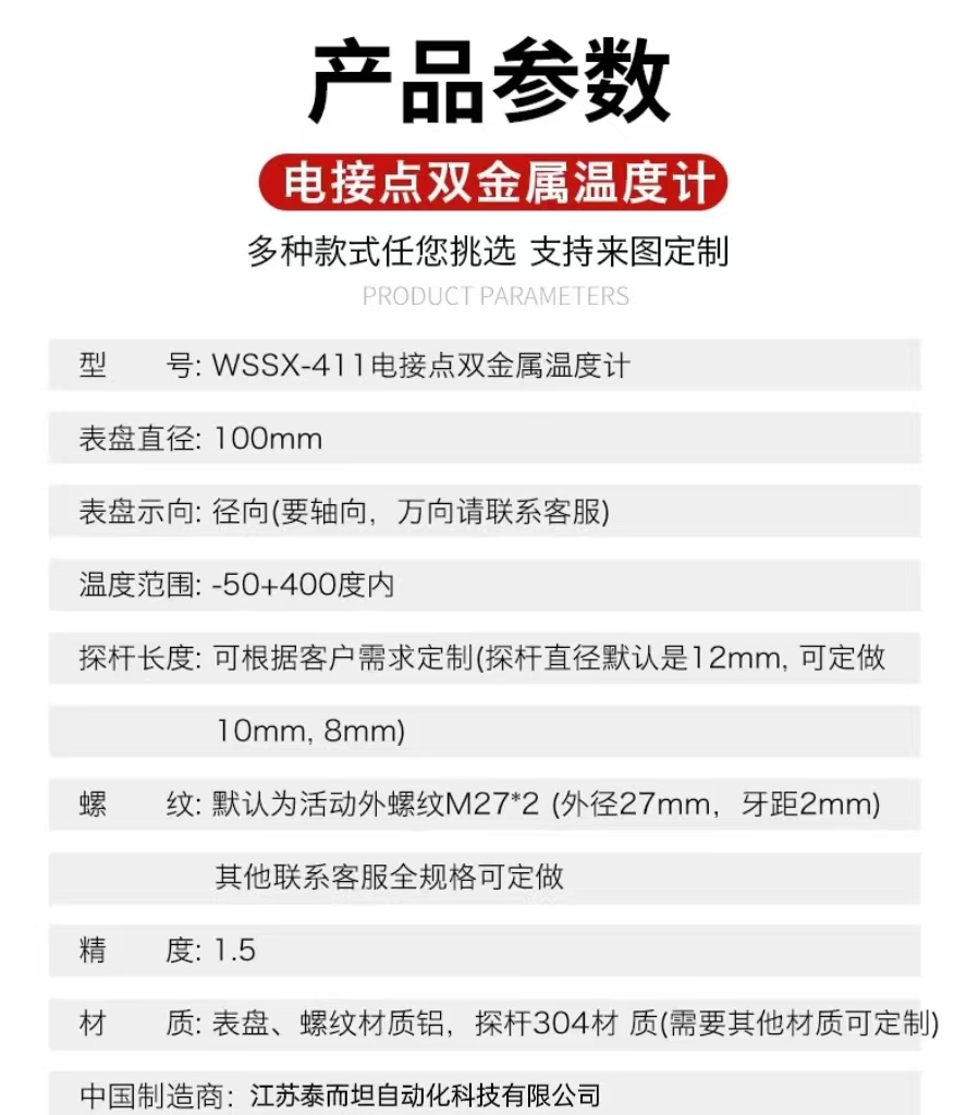 電接點雙金屬溫度計wssx-411工業(yè)溫度計鍋爐管道