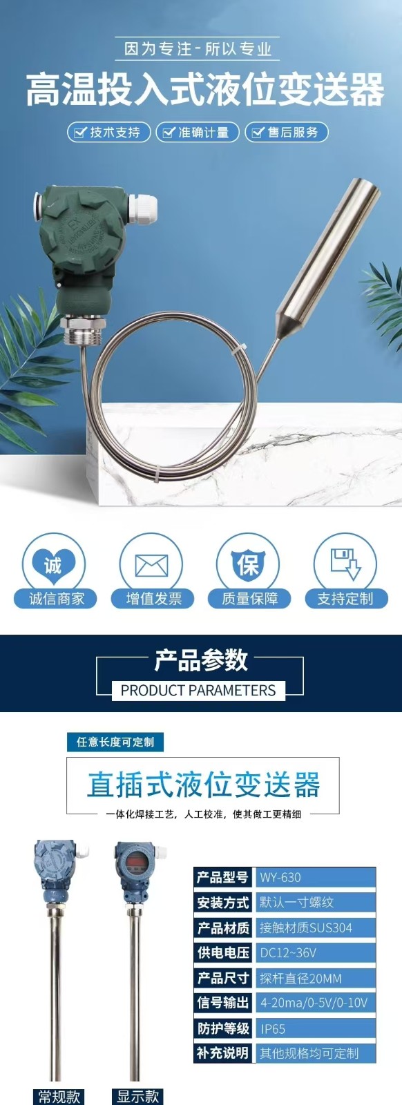 高溫防腐液位變送器投入式液位計(jì)靜壓開水位油位傳感器