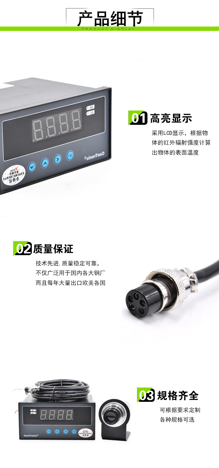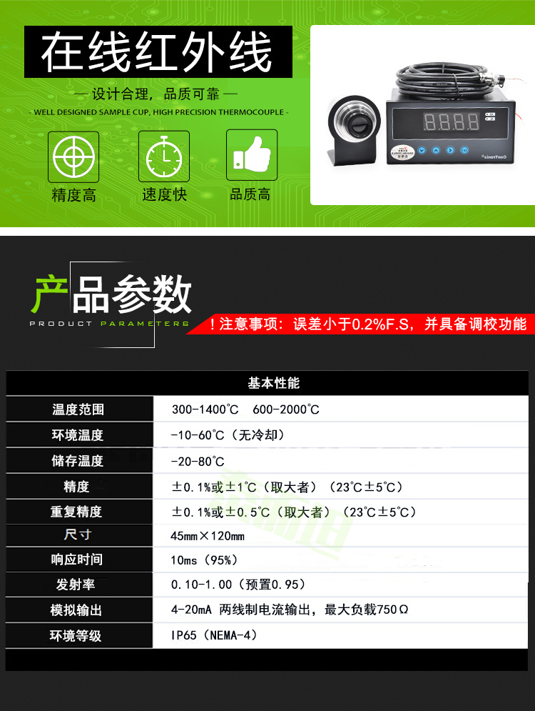 2000度高精度鋼鐵水高溫液體在線紅外線測(cè)溫儀帶顯示儀表 0-500度