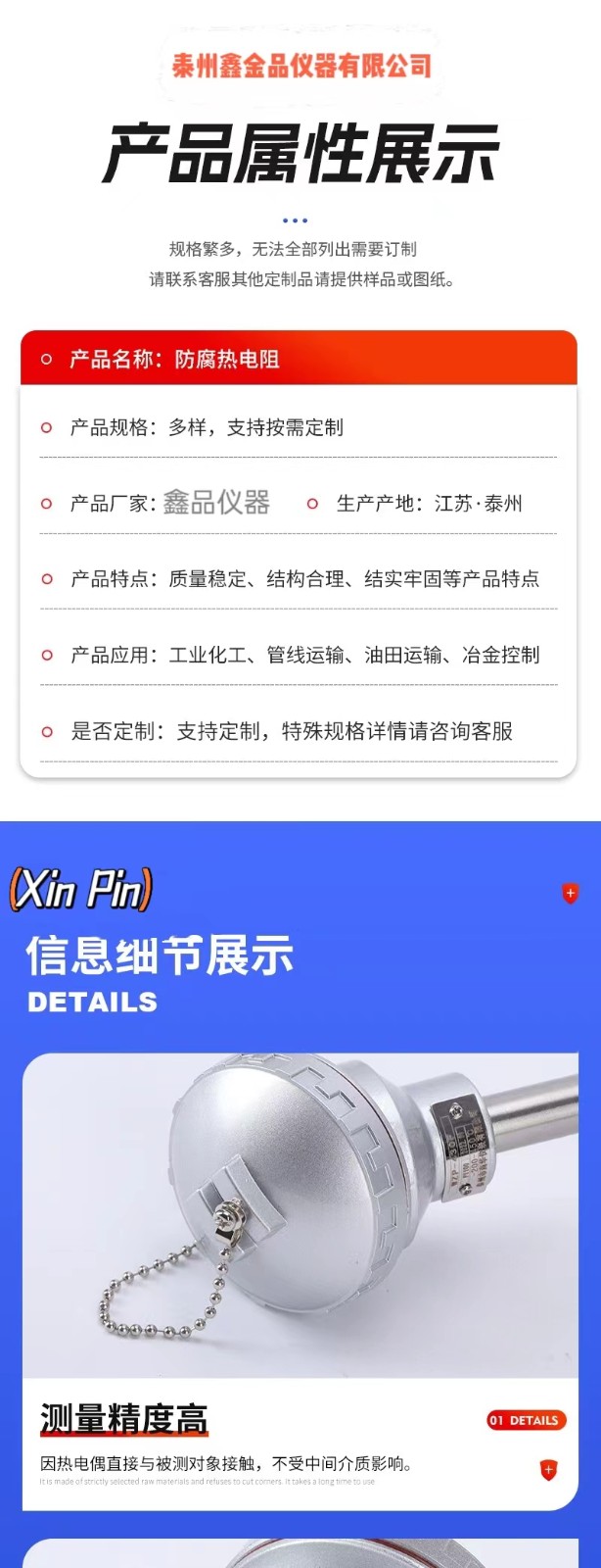 防腐熱電阻 溫度傳感器WZP-430F 用于石油化工各種腐蝕性介質(zhì)中測 長度 300mm