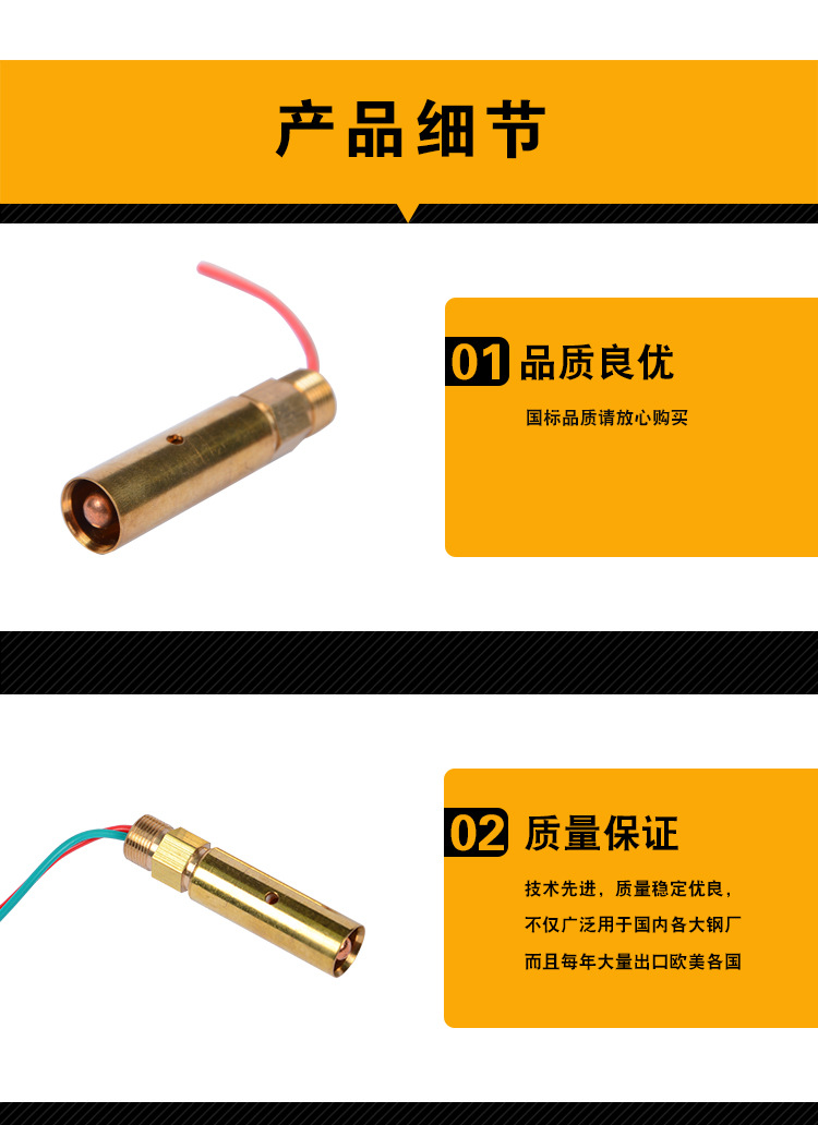 專用鋼水手持式測溫槍桿測溫槍頭(銅頭接插件)