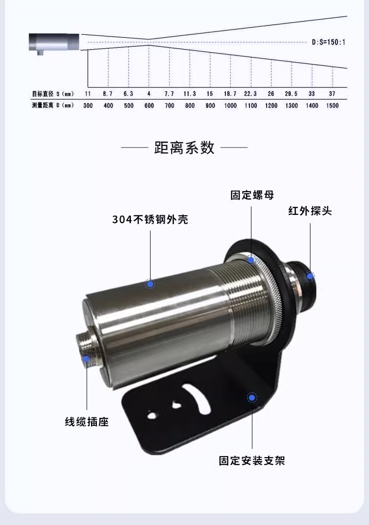 在線式紅外線測(cè)溫儀工業(yè)溫度傳感器短波測(cè)光亮金屬高精度非接觸