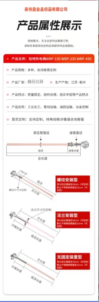 GH3039不銹鋼裝配式鉑銠熱電偶