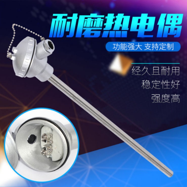 耐磨熱電偶是電廠循環(huán)流化訂鍋爐,沸騰鍋爐,粉磨煤機造氣爐和水泥廠系列窯頭,窯尾,爐頭罩及化工,冶煉等高溫耐磨環(huán)境較為理想的高技術類專用產(chǎn)品,G系列博采眾長,采用獨特的工藝配方,在失態(tài)平衡中制作出耐磨合金該產(chǎn)品與普通不銹鋼金屬,金屬陶瓷保護管,與市場上同類耐磨合金保護管相比,其使用壽命提高1-5倍.由于環(huán)境溫度差,溫控點過高,振動較大,鼓風機風速過高,磨損嚴重,造成溫度測量非常困難,使用壽命很短暫,一般的耐磨合金只有10-90天就磨透損壞,燒彎,折斷,造成熱電偶損壞,給用戶帶來很大的損失和不必要的麻煩,本公司生產(chǎn)的G系列彌補了這個缺點。