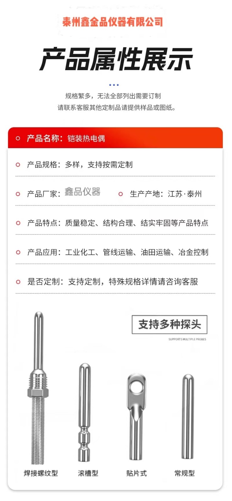 K型鎧裝熱電偶 WRNK-131 、耐高溫、熱響應(yīng)時間快溫度傳感器探頭